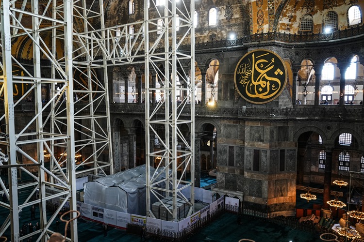 Camide 2023’te başlayan ikinci etap restorasyon çalışmaları kapsamında, Ayasofya’nın deprem güvenliğinin sağlanması amacıyla ana kubbede dış yüzeyde kurşun kaplamalar yenilenirken, bu süreçte yapının mevsimsel koşullardan etkilenmemesi ve iç yüzeydeki mozaiklerin zarar görmemesi için kubbe yüzeyinin geçici çelik konstrüksiyon ile kapatılmasına Bilim Heyeti ve Koruma Kurulu tarafından karar verildi.