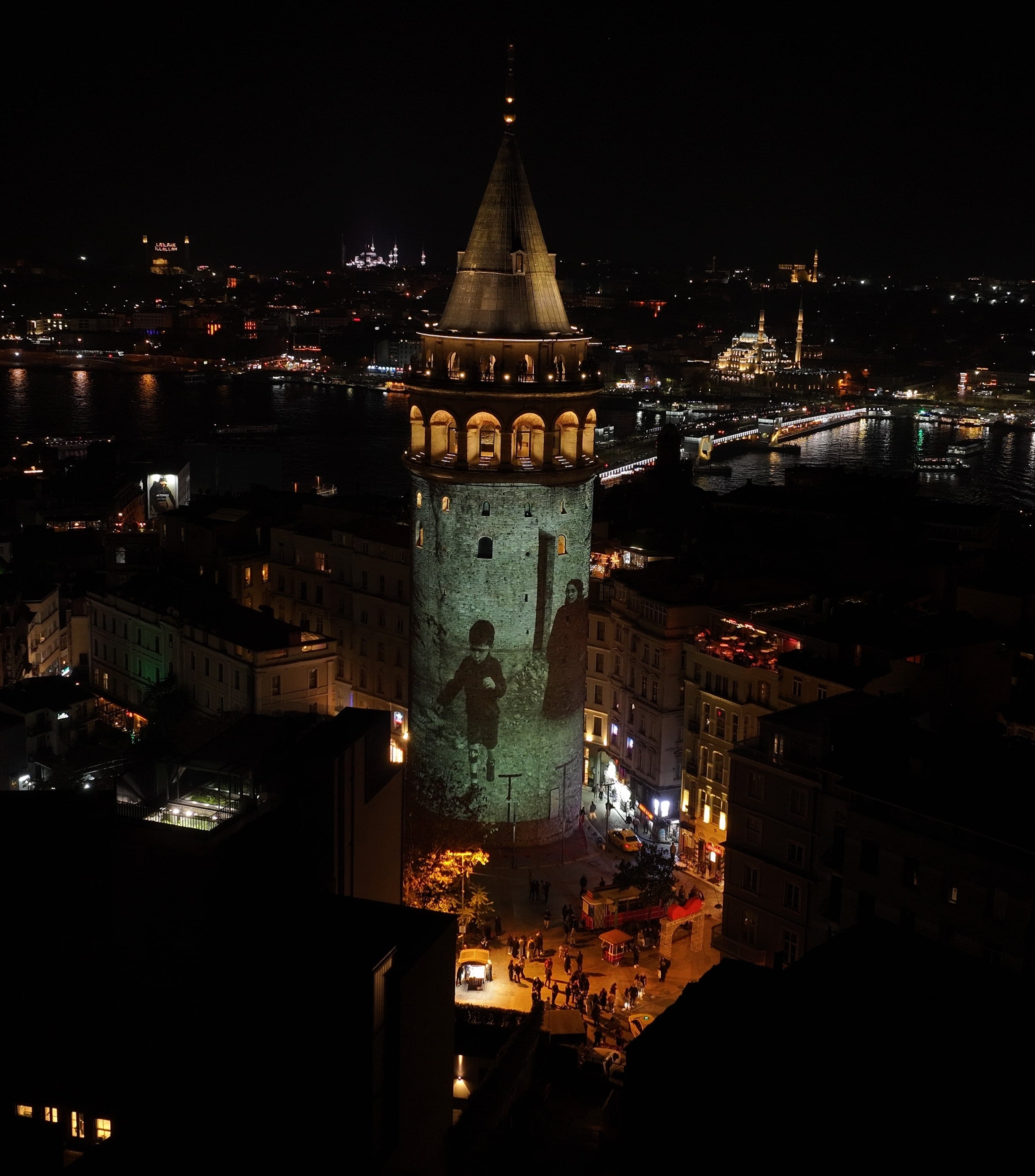 Galata Kulesi’ne savaşlarda engelli kalan çocuklar ve sivillerin videosu yansıtıldı