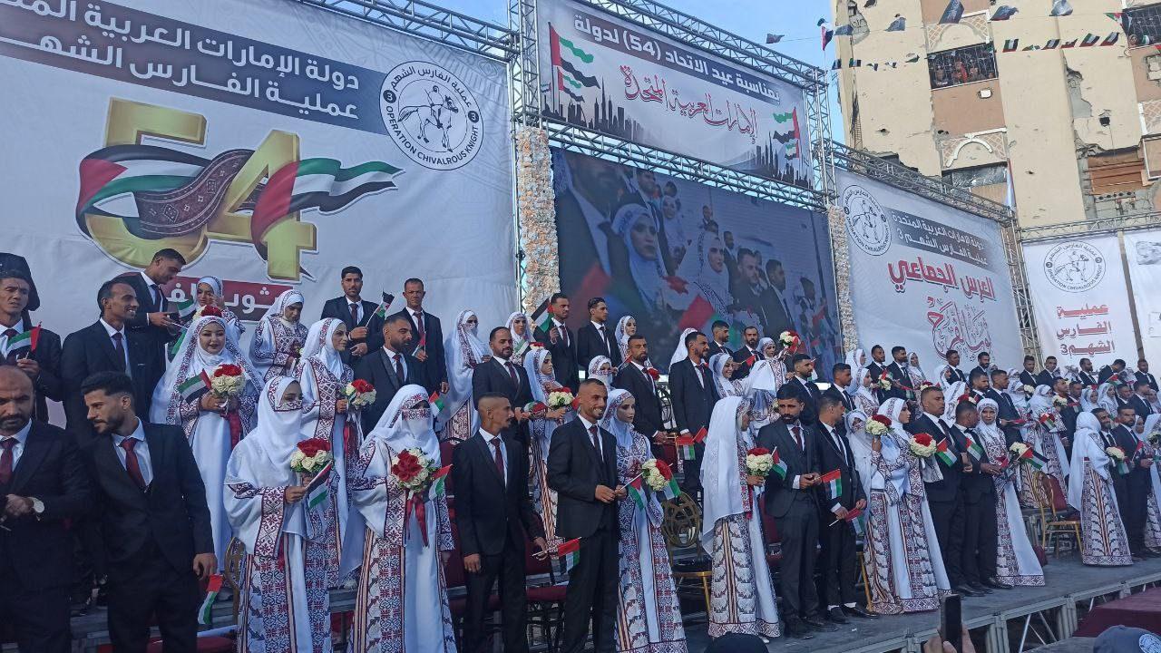 Cesur Şövalye Operasyonu 3 Başkanı Ali Al Shehhi, “Gazze’de Birleşik Arap Emirlikleri’nin 54. Birlik Günü’nü kutlamak için 54 damadın düğününü kutluyoruz” ifadelerini kullanarak, bu törenin BAE ve Filistin halkları arasındaki köklü bağı yansıttığını ve kararlılık mesajı taşıdığını belirtti. Al Shehhi, “Gazze, büyük acılar çekmiş olmasına rağmen, yıkıntılardan sevincin doğabileceğini kanıtlamaya devam eden bir şehir” dedi.