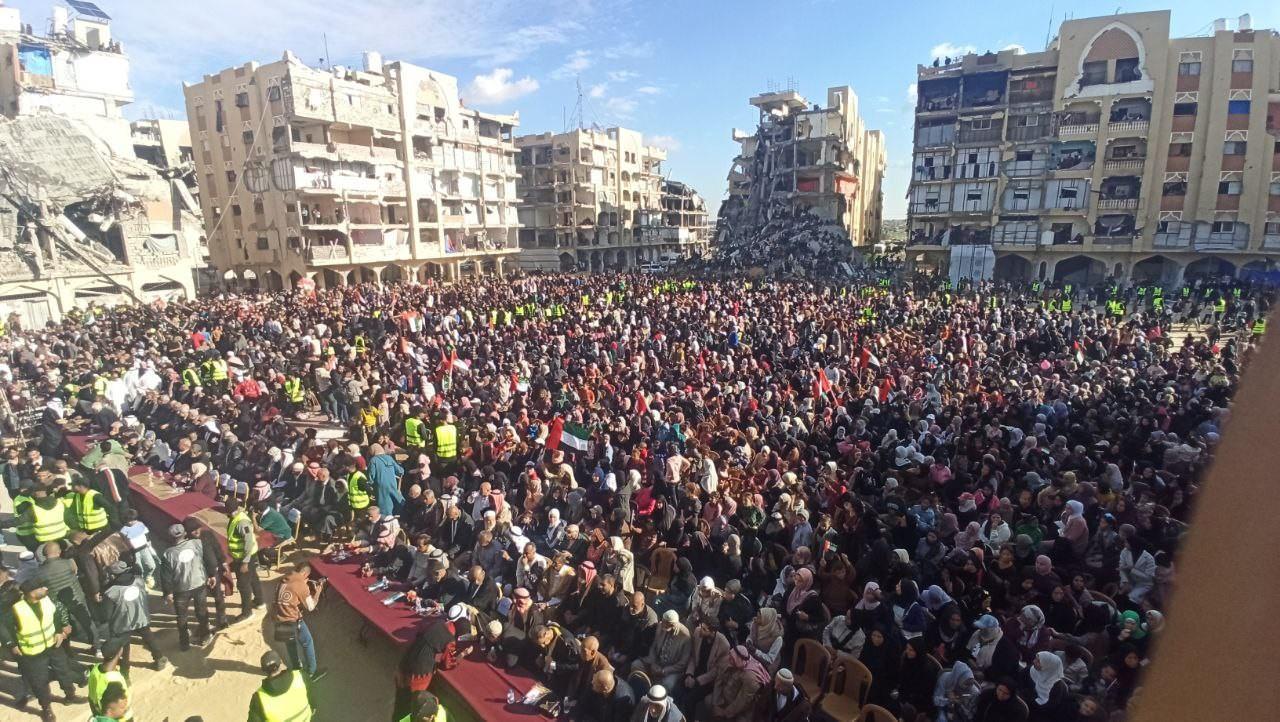 Gazze Şeridi’nde İsrail’in ihlallerine rağmen devam eden ateşkes ile hayat yavaş yavaş normale dönmeye başladı. Han Yunus’taki Hamad Residential City’de enkazlar arasında düzenlenen toplu nikah töreni ile 54 çift savaşın gölgesinde dünya evine girdi.