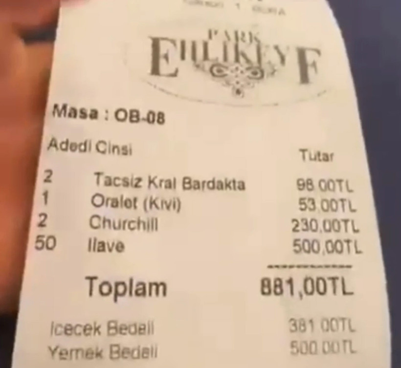 Ekim 2025‘te Ankara’da bir kafede müşteri, 381 TL’lik siparişine ek olarak adisyonda yer alan 500 TL ek ücreti görünce şoke oldu. 1000 TL altındaki siparişler için 500 TL “masa ücreti” talep eden mekan, sosyal medyada büyük tepki çekti. Ticaret Bakanlığı ekipleri yaptığı incelemede işletmenin “Fiyat Etiketi Yönetmeliği’ne aykırı davrandığını” tespit ederek idari para cezası uyguladı.